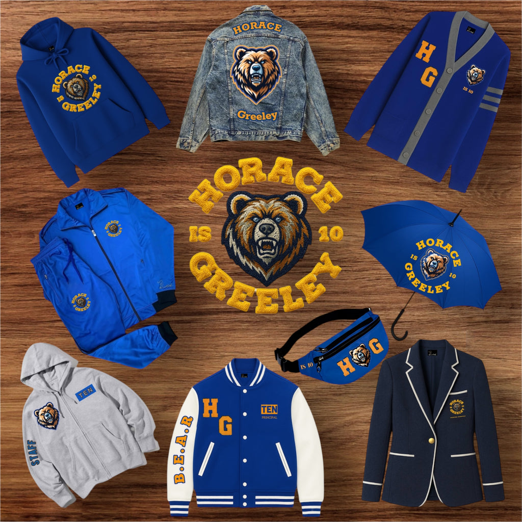 From the signature chenille bear crest to the bold “HG” varsity embroidery, each design is a tribute to the strength and excellence of Horace Greeley.
